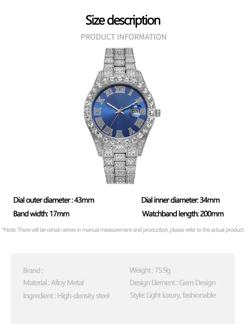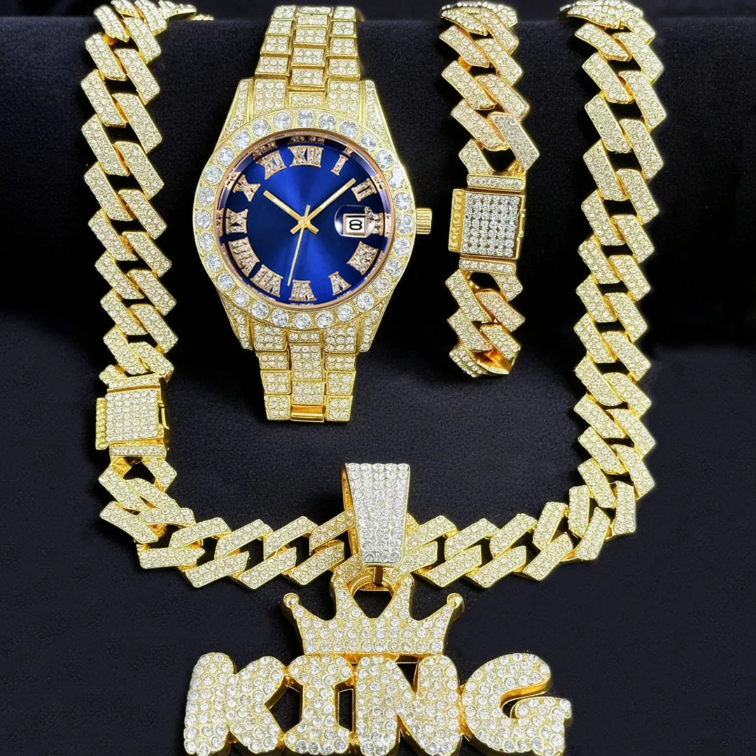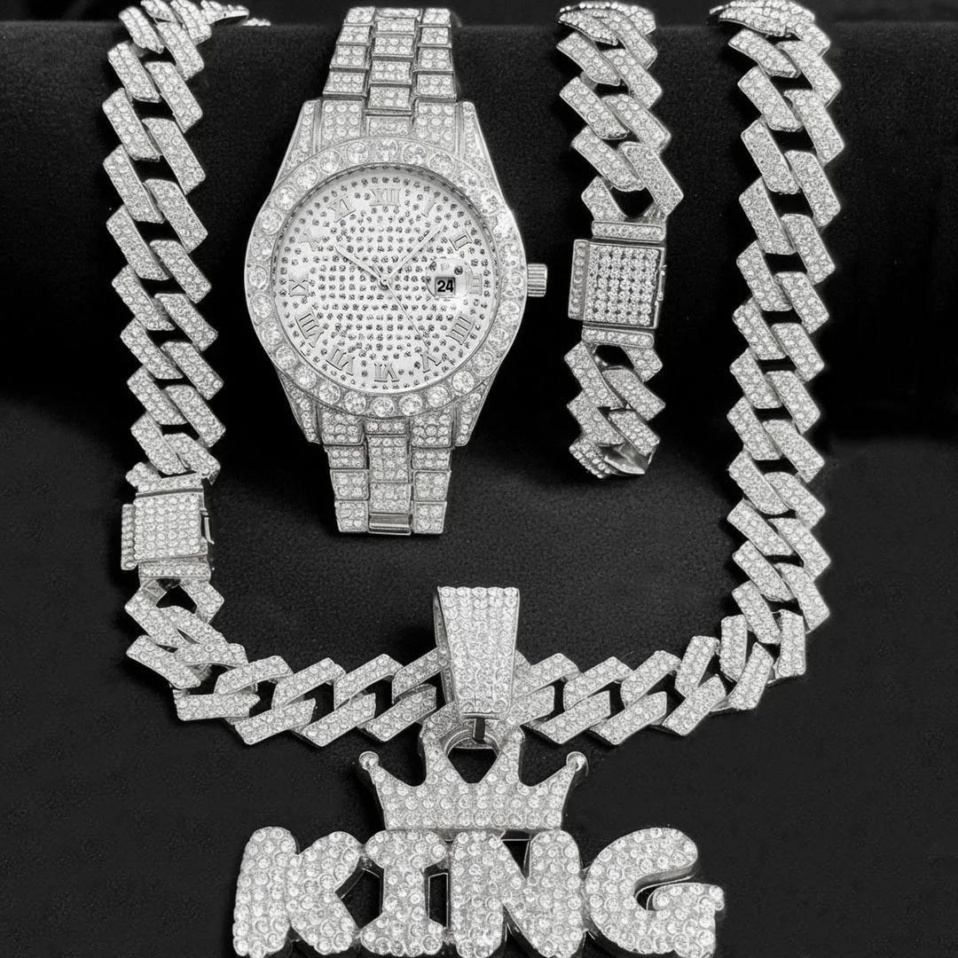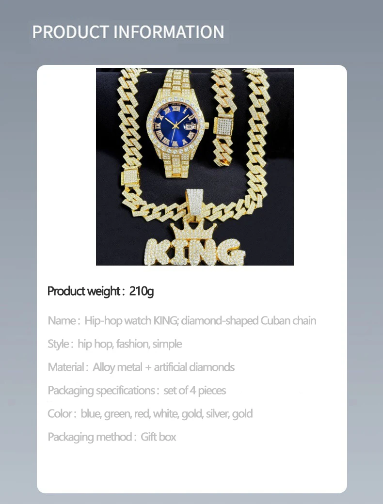 5.The detailed design shows ingenuity: from the exquisiteness of the "KING" pendant, to the gem design of the watch dial, to the unique shape of the chain, every detail shows personality and uniqueness, showing unique taste.