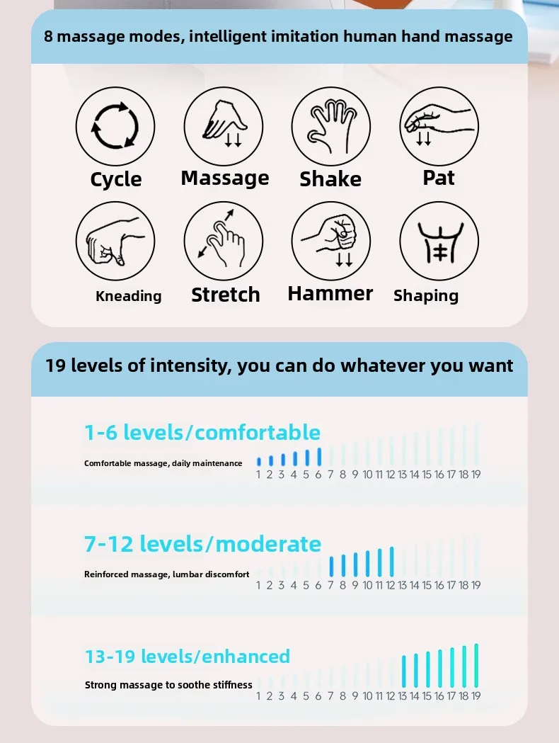 Equipped with a 2500mAh battery for longer battery life, heated massage for 3 hours, single massage for 8-9 hours