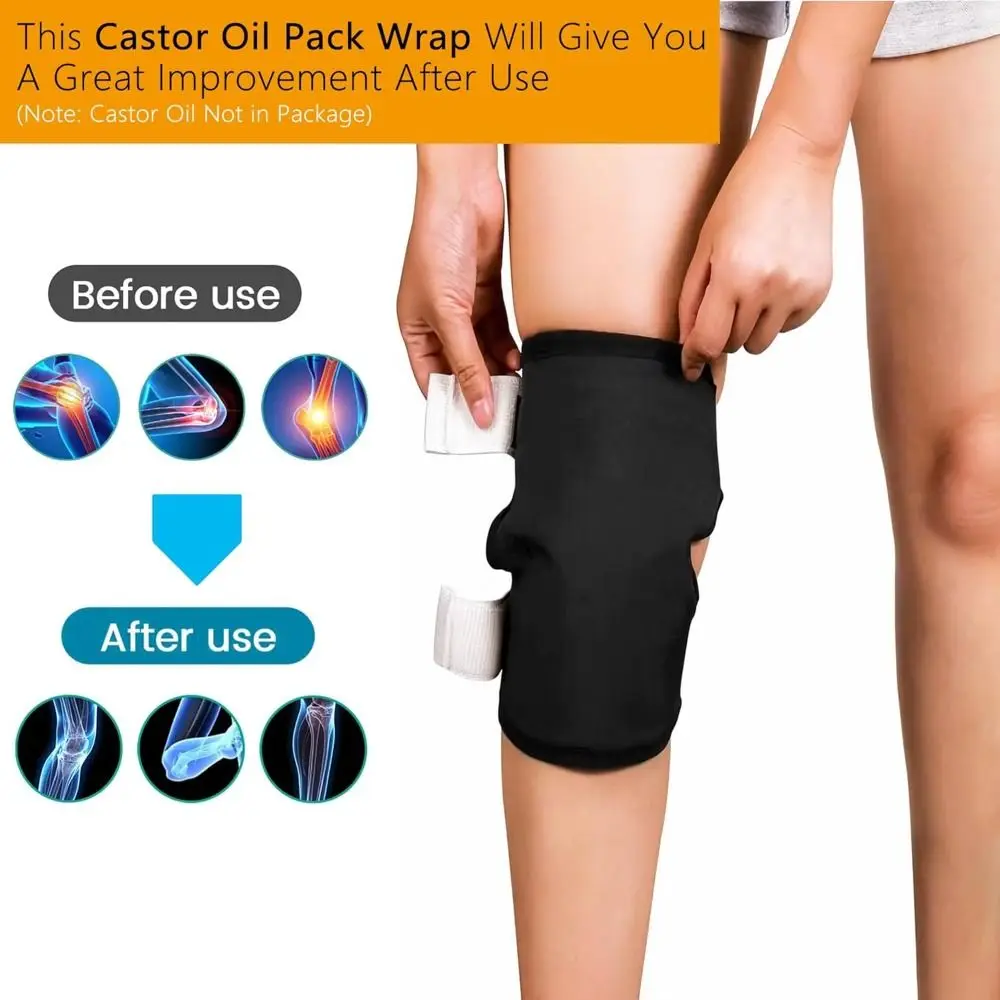 Flannel Castor Oil Pack Wrap with No Oil Leakage and Anti-Slip for Knee Elbow Joints Reusable Castor Oil Compress Pads Wraps